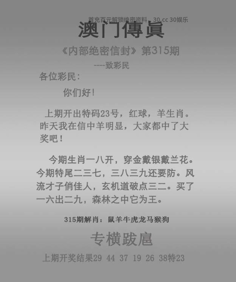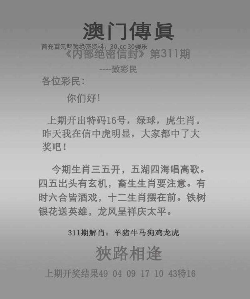 | 316期:仙机运财【四段中特】已公开! |